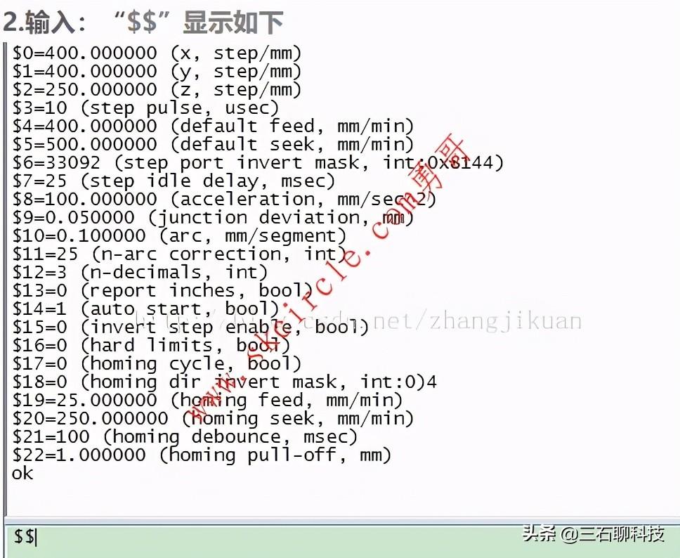单片机串口跟电脑连接,测试GRBL串口命令1.输入:“$”显示如下:
