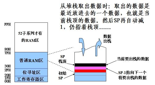 在片内RAM中,常常要指定一个专门的区域来存放某些特别的数据,它遵循顺序存取和后进先出(LIFO/FILO)的原则,这个RAM区叫堆栈。