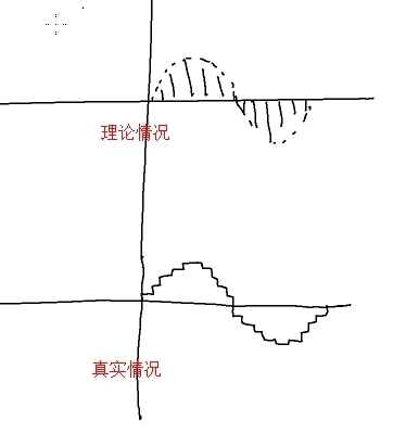 4、实现思路分析:配置一个固定频率的dac产生信号,也就是说门函数是固定的,这也带来一个弊端:产生的信号频率越高,越失真(说白了就是越容易变成阶梯状的函数),好处就是容易写~ 请看下图: