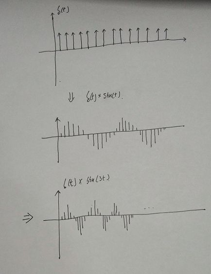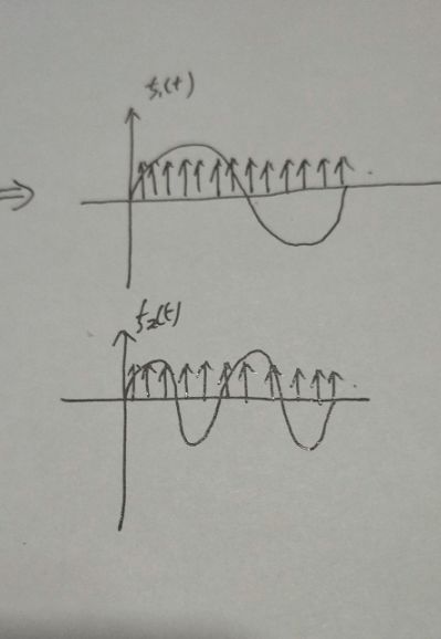 显而易见,频率大的信号在一个周期之内所遍历的梳状函数更少。。