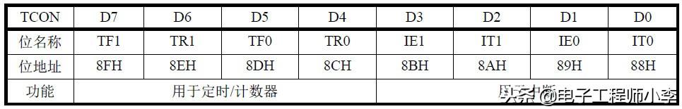TCON的字节地址为88H,可进行位寻址,其具体的结构、位名称、位地址以及功能如表4-2所示。