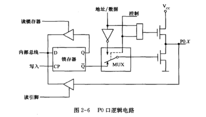 也就是说,当给与门的控制端送“1”时,内部地址/数据总线上的信号就可以从P0端口输出,P0端口就可当作地址/数据总线引脚使用。