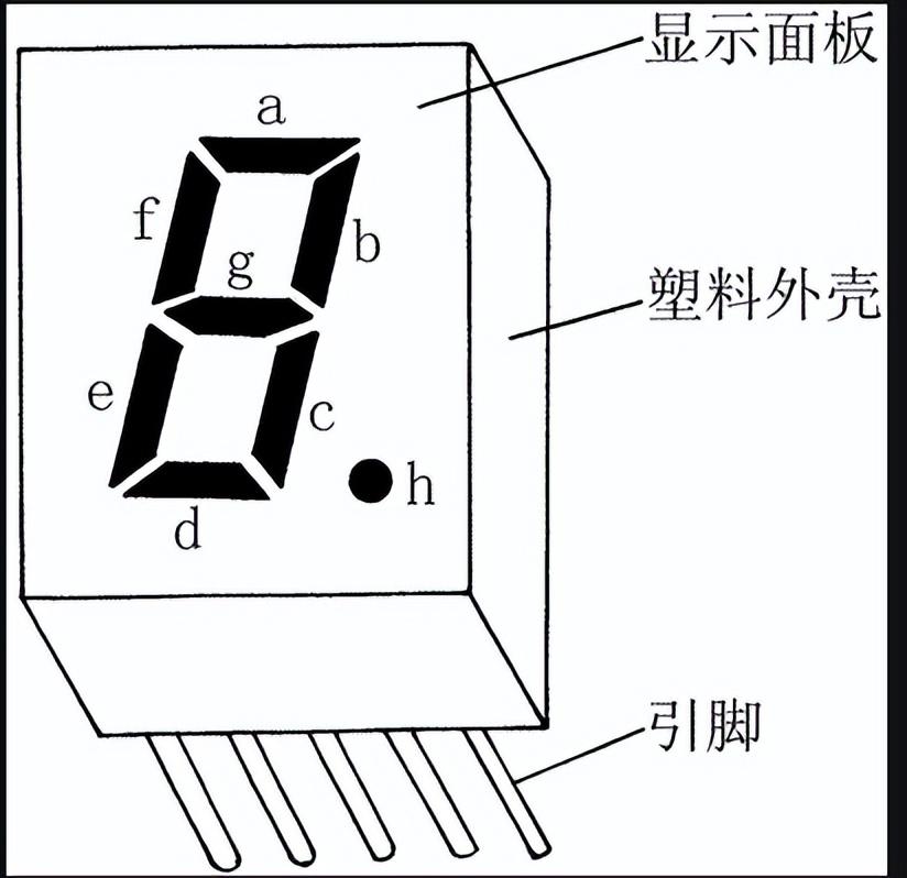 数码管是一类价格便宜 使用简单,通过对其不同的管脚输入相对的电流,使其发亮,从而显示出数字能够显示 时间、日期、温度等所有可用数字表示的参数的器件。一般的七段数码管拥有七个发光二极管(三横四纵)用以显示十进制0至9的数字外加小数点,也可以显示英文字母 A 至 F(b、d 为小写,其他为大写)。现时大部分的七段数码管会以斜体显示。