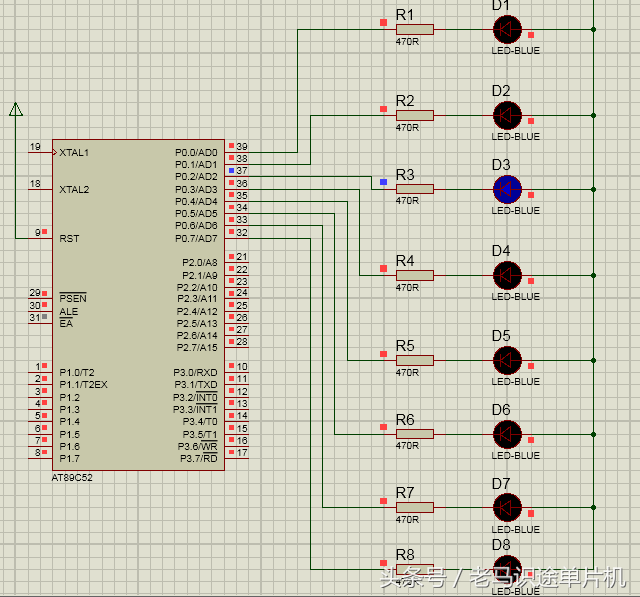 AT89 C 51 单片机 的P1口控制8盏LED 流水灯 ?#include"reg51.h"//包含头文件#defineucharunsignedcharvoiddelay02s(void)//延时0.2s子程序...