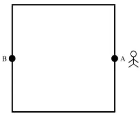 上面这张图所示是一个边长为100m的正方形跑道,有一个人(称作甲)处于A点,如果要让甲到达B点,可以执行如下的程序: