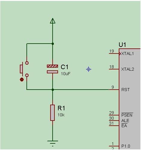 在电路图中,电容的的大小是10uF,电阻的大小是10k。所以根据公式,可以算出电容充电到电源电压的0.7倍(单片机的电源是5V,所以充电到0.7倍即为3.5V),需要的时间是10K*10UF=0.1S。