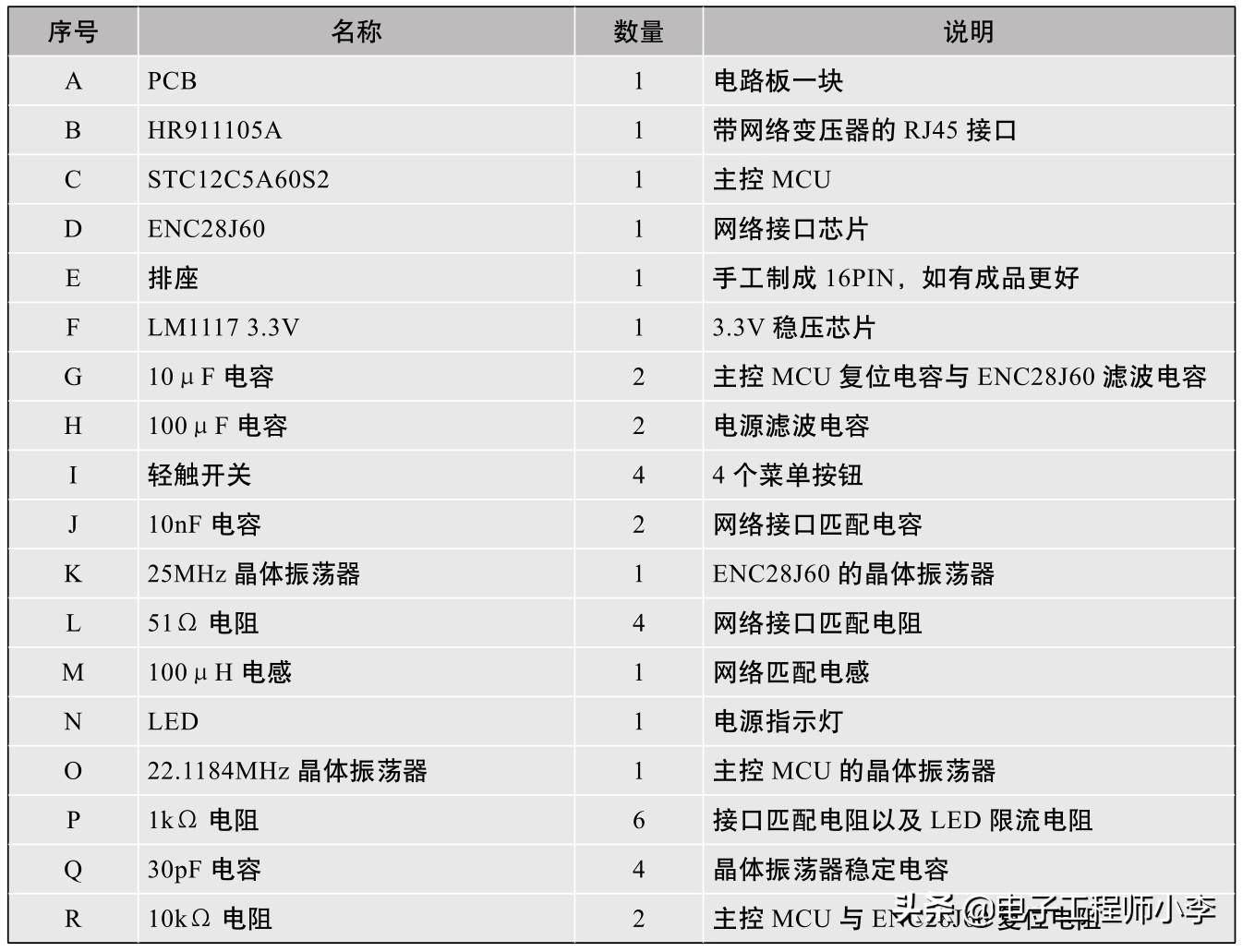(2)网络需要一定的数据包RAM缓存,因此主控芯片RAM至少为1KB以上;