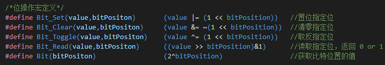 3.通常把1个字节的其中某一位清零或置1,位操作也通常需要移位算法来计算,不够直观,换成宏定义如下,直观明了。