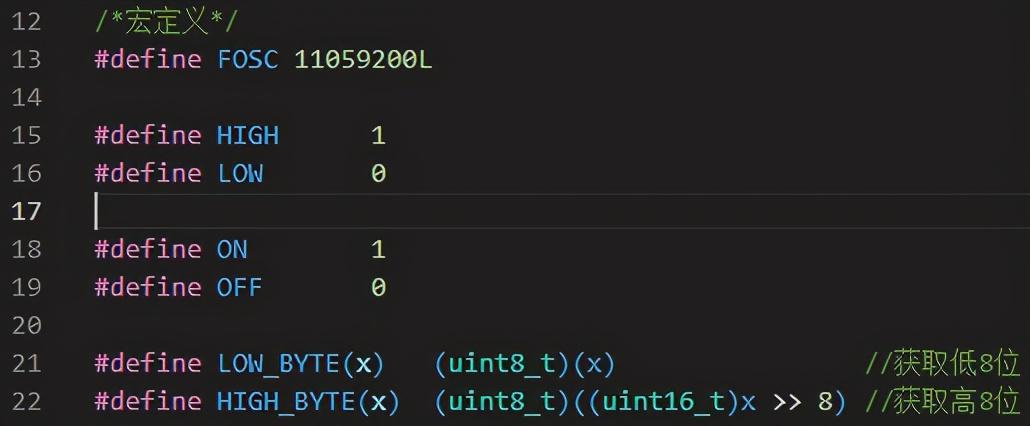 当串口发送一个16位数据(unsigned int 或 int)出去,通常要先换成两个字节数据,放入发送缓冲区中,如果每次都去写移位代码来换算,太过于麻烦,所以定义成宏定义,就会很方便。