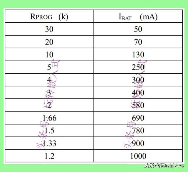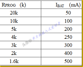 实际应用中根据需求选择合适的Rprog。Rprog与充电电流的关系确定可参考下表: