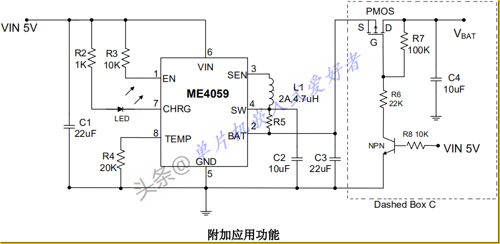 有关ME4059芯片的其他相关信息请参阅其数据手册,这里不再做过多描述,只是把这种开关型锂电池充电的方案介绍给大家。