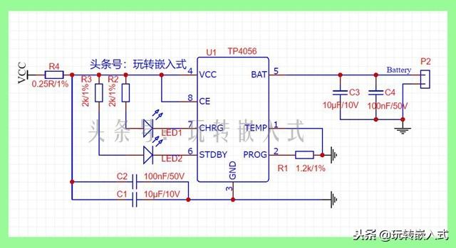 我们可以根据这个TP4057典型应用电路自己搭建一个锂电池充电电路,这样锂电池的充电安全放心,寿命也不会减少太快。