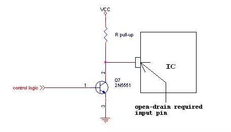 1. 开漏和开集的原理类似,在许多应用中我们利用开集电路代替开漏电路。例如,某输入Pin要求由开漏电路驱动。则我们常见的驱动方式是利用一个三极管组成开集电路来驱动它,即方便又节省成本。如图3。