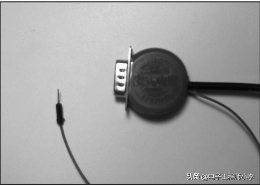 这里使用的是一块旧的GPS接收模块,如图17.2所示,市场价在30元左右,用于接收GPS数据。接收模块原本使用的是RJ-11水晶头,为了方便和开发板上的标准9针串口连接,我自己制作了一个接头。焊接好后,把插头放进两个饮料瓶盖(经过美工刀处理后)里,并挤入热熔胶进行填充。由于九针串口没有VCC,所以模块供电就通过外接的一根面包板线完成。完工后的自制插头如图17.3所示。