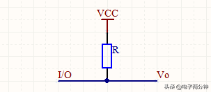 这次简单说说上拉电阻,那问题来了,什么是上拉电阻?上拉电阻从概念上理解就是一个电阻一端接到电源正极,一端接到输出端。下图就是一个简单的上拉电阻,如果没有这个电阻R,则I/O口和VCC就没有直接连接关系,如果用电阻连接起来就是一个上拉电阻。