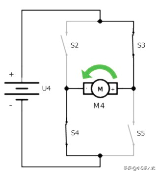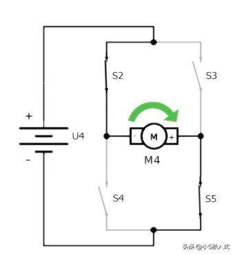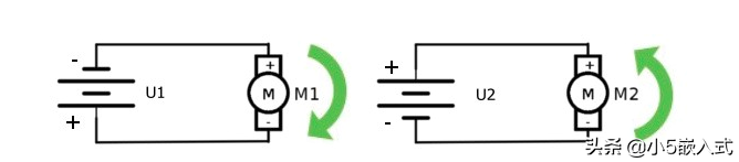 我们都有这么一个通识的认知:对于直流电机,我们给它接两个线,一正一负,电机就动起来了,并且朝一个方向一直运动,当我们交叉两个线的时候即对调正负极的时候,电机的转速是不变的,但是电机的旋转方向却发生了变化,方向了。