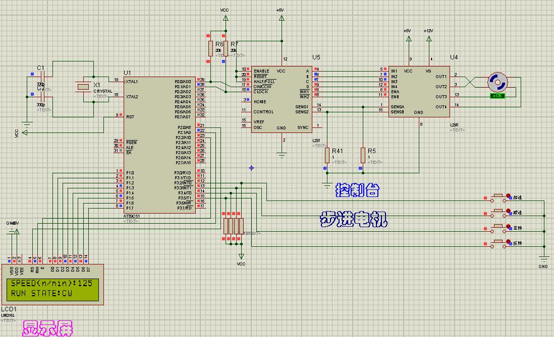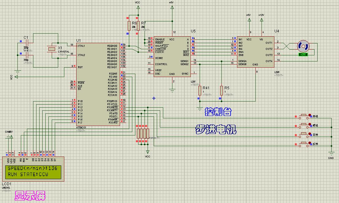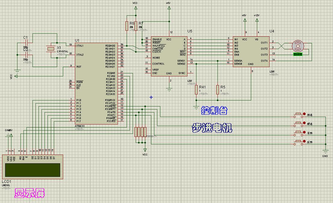 51单片机+L297+ L298 实现步进电机的正反转,加减速仿真。