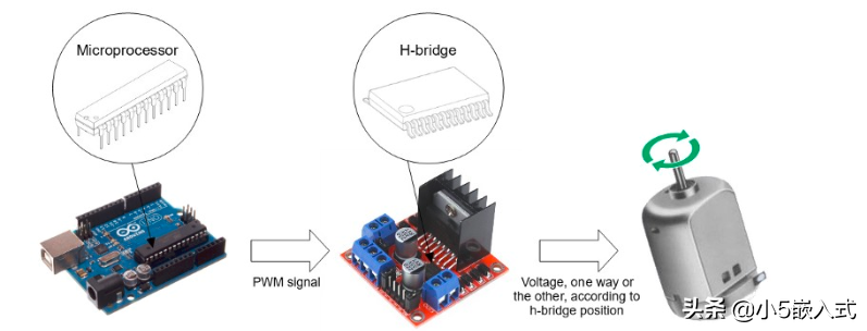 但是不管怎么样,这些控制都不是很好的控制方法,都必须实现手动的输入。我在我们对电机的使用上,肯定是不能这样的,你做一个机器车,要实现反向运动,你还需要去拨动一个开关,显然这是不智能的。