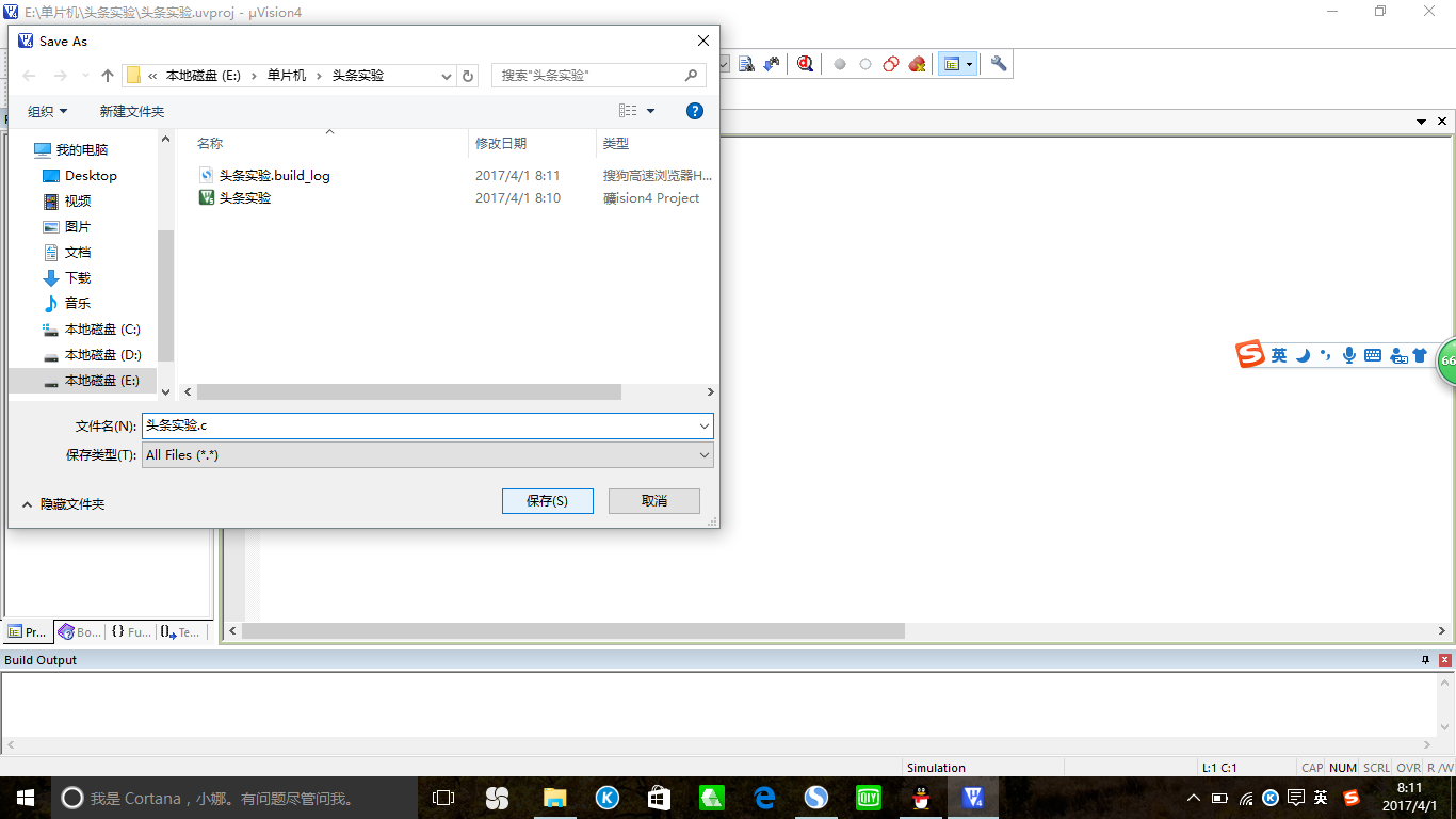 第七步:命名文件名称,注意这里一定要以.c结尾,我们命名为头条实验.c,点击保存