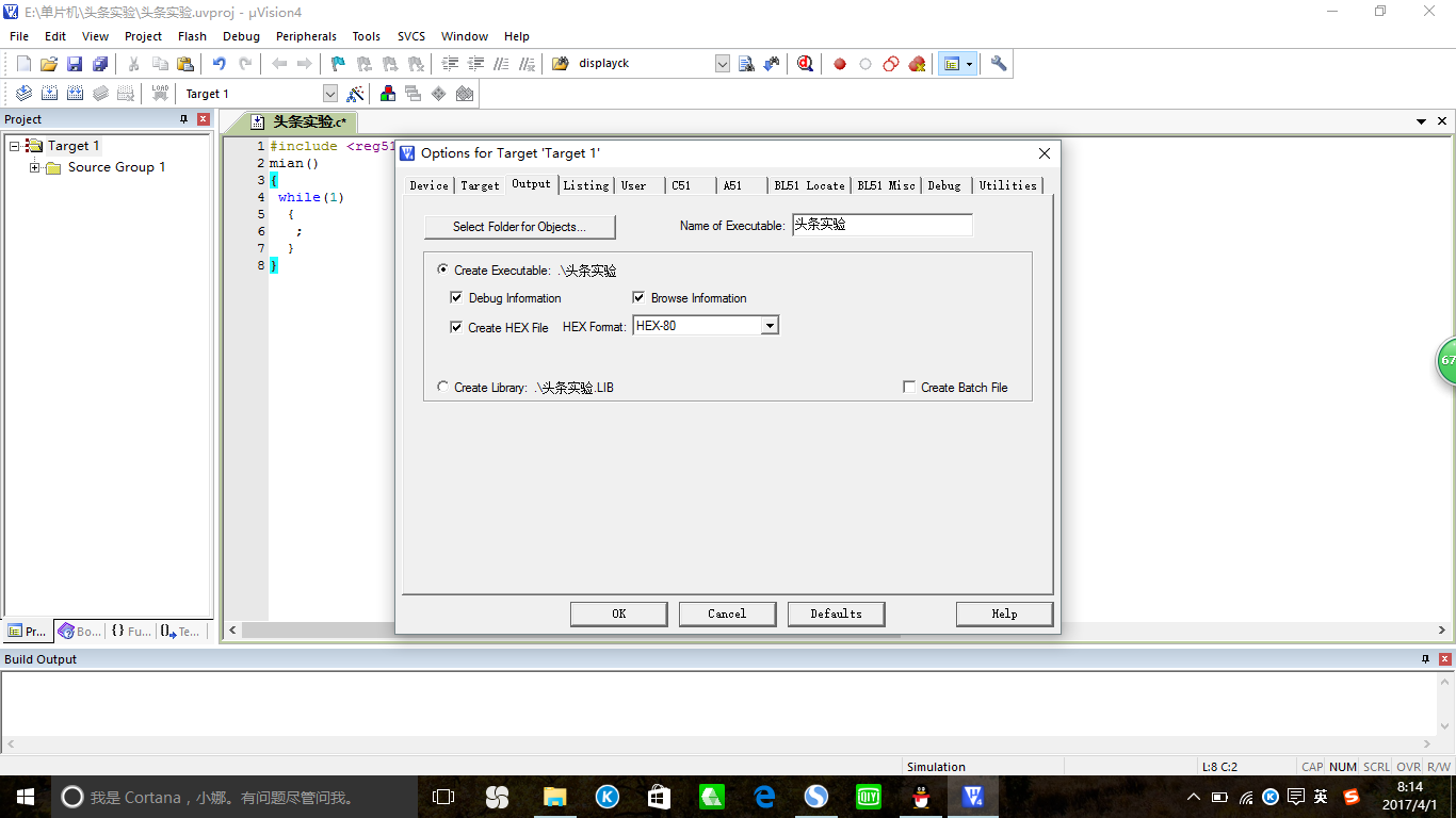 第十一步:在Output选项框下在create HEX File这一选项框打个勾
