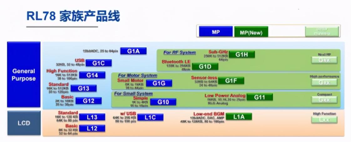 NEC电子和瑞萨科技于2010年4月1日通过合并诞生了“瑞萨电子”,现为全球首屈一指的微控制器供应商,也是SoC系统晶片与各式类比及电源装置等先进半导体解决方案的领导品牌之一。他们推出的针对中国市场的MCU产品RL78系列分为通用产品和集成LCD驱动的产品,通用产品的升级款又围绕着传感器、小系统、马达驱动等具体应用领域做了相应拓展。