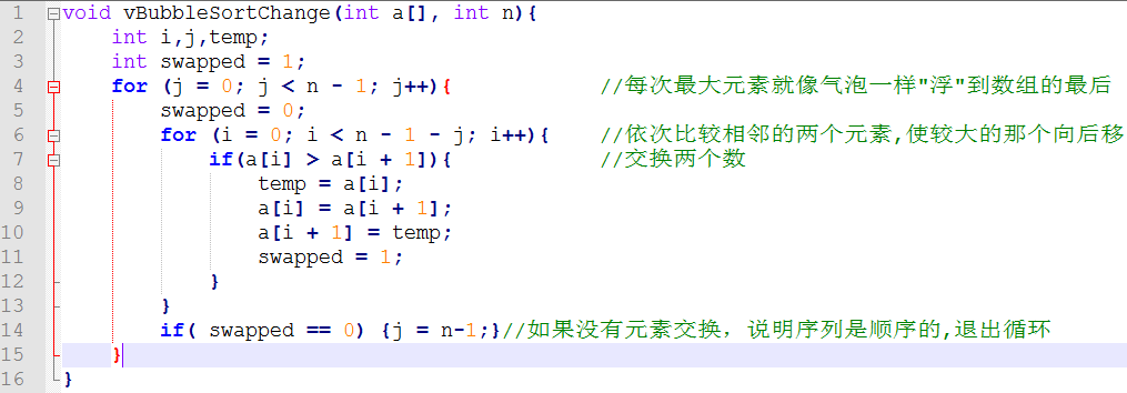 if( swapped == 0) {j = n-1;}//如果没有元素交换,说明序列是顺序的,退出循环