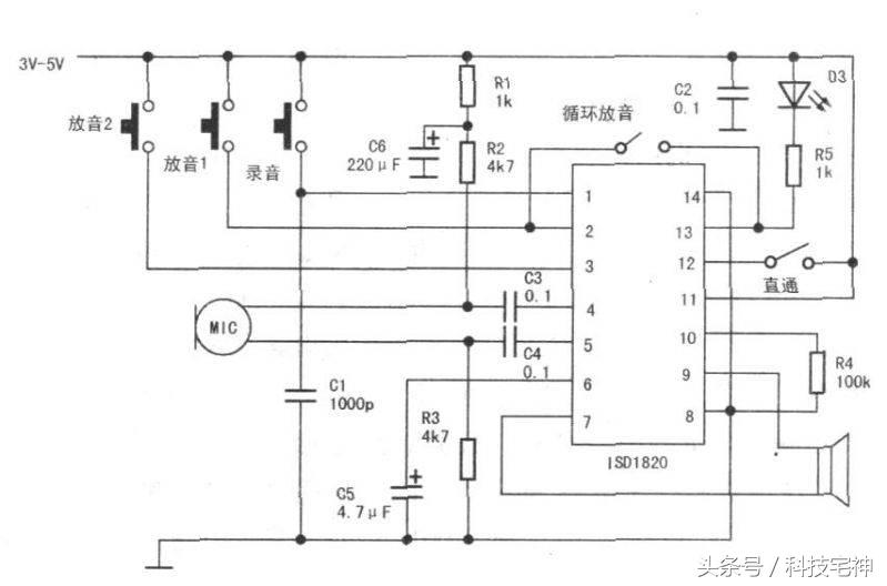 自己动手DIY录音机-ISD1820(内附电路图及原件)