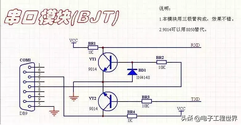 本电路是用三极管搭的,电路简单,成本低,但是问题,一般在低波特率下是非常好的。