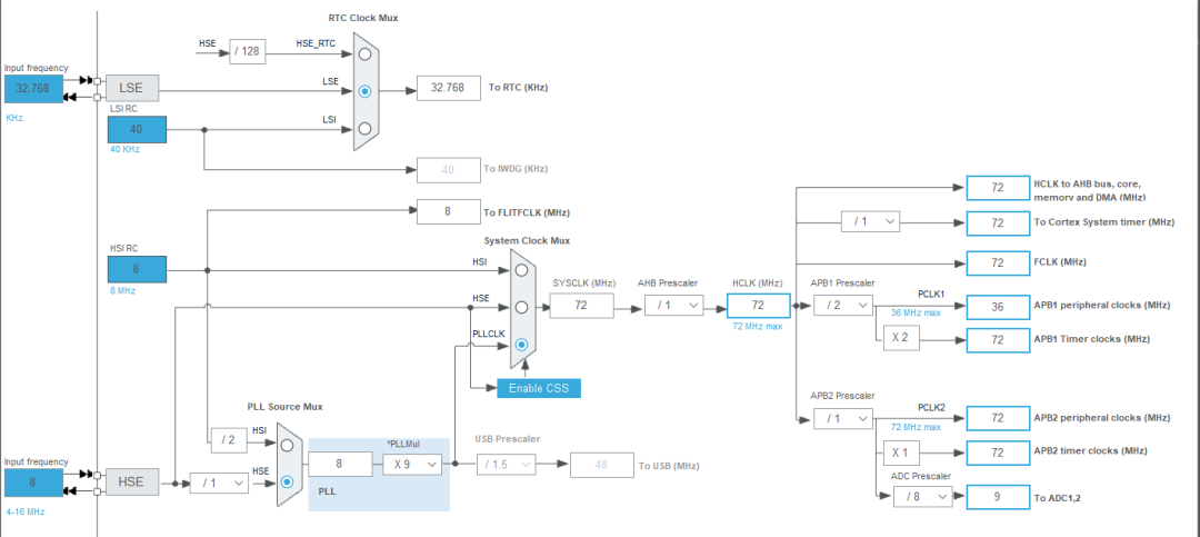 CUBE MX配置如下,采用四线SW调试方式,调试工具J-LINK。