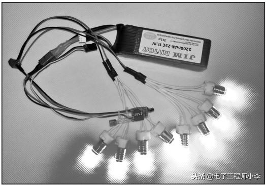 12 通过3s(11.1V)电池驱动8个LED(合计8W功率)的效果。
