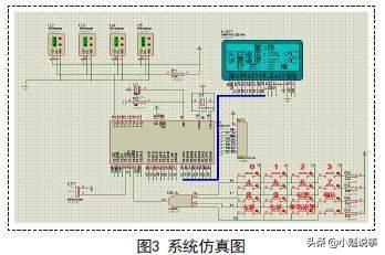 Proteus 软件是来自用过LabcenterElectronics公司,基于SPICEF5 仿真引擎的很合电路仿真软件,是一款含有大量的系统资源、丰富的硬件接口电路,具有强大的调试功能和软硬件相结合的仿真系统。它很好地解决了硬件设计和软件调试的问题,不仅能够仿真模拟、数字电路以及模数混合电路,还能够仿真基于单片机的电子系统。本系统PROTEUS仿真图如图3所示。