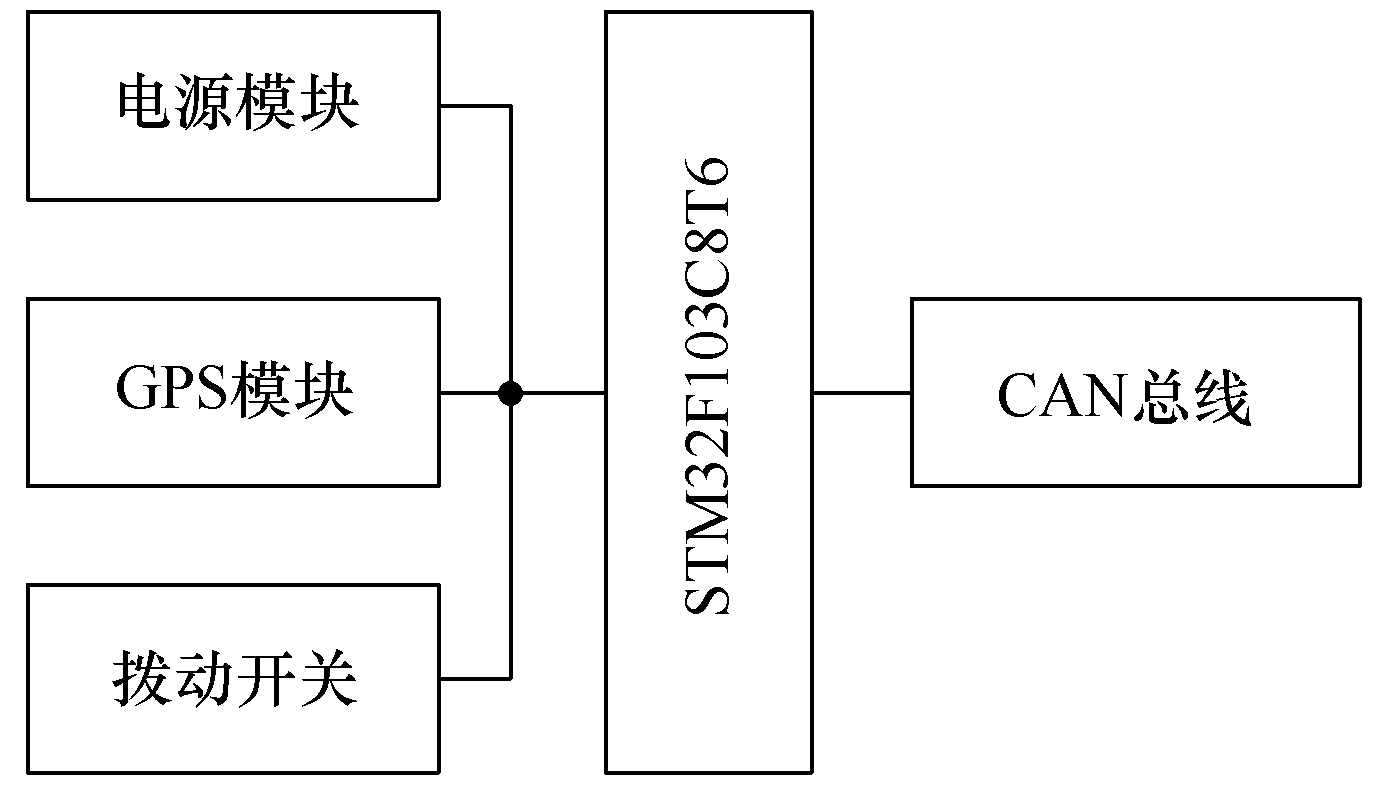 采集站集成了单片机、GPS模块、CAN总线模块及拨动开关。主芯片是故障定位及信号上报的关键控制部件。本文所选用的主控制芯片均为ST公司出品的32位STM32F103单片机,无论在性能还是功耗上都具有一定优势。图3为采集站结构。