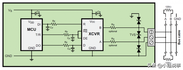 如果不连接公共接地,即使电路现在正在工作,RS485驱动器也可能随时损坏。这是因为设备之间的电位差可能会很高,因为未连接接地,并且会有更多电流流过A,B线。值得注意的是,如果需要隔离接地,则必须使用隔离式RS485驱动器,而不要使用MAX485等常规驱动器。二、电源接下来,你必须确保电源良好并且在RS485驱动器的额定范围内。如果你的电源受到瞬态噪声和尖峰的影响,请使用适当的电容器、电感器、TVS二极管和MOV便可解决。