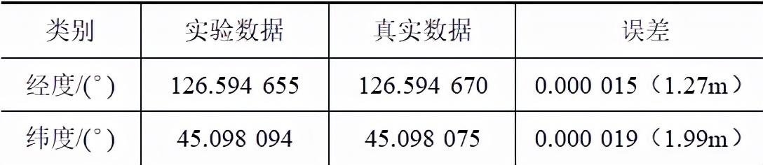 通过对系统的测试情况来看,传输时间大概在1s左右,经查询,测试地点的坐标信息为N:45.098075, E:126.594670,我国常用的为WGS1984坐标,根据纬度关系1s相差的距离约为30.83m,经换算可得实验纬度误差为0°0'0.0684",实验所获取的数据与实际数据相比相差1.99m。同理,经度1s相差23.6m,经换算可得实验经度误差为0°0'0.054",实验所获取的数据与实际数据相比相差1.2744m。实验误差数据见表2。