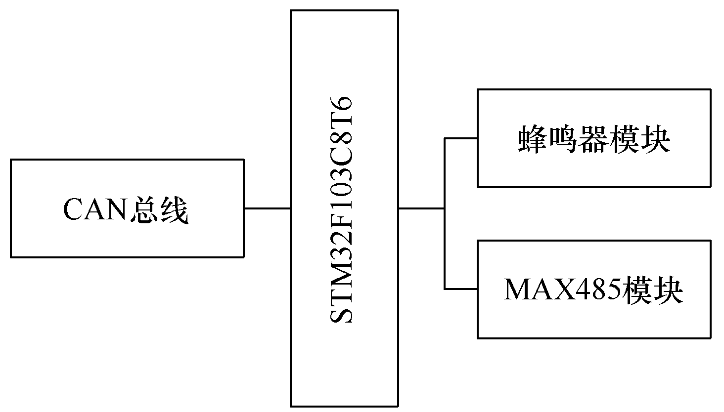 总站主要集成了STM32单片机、MAX485模块、CAN总线模块及蜂鸣器模块。当总站收到采集站传输的时间信息和故障位置经纬度信息时,蜂鸣器模块工作,提醒工作人员皮带输送机出现异常。主芯片记录CAN接收器所接收的信息并通过RS 485串口进行通信,PC端显示故障位置信息及时间数据,以便工作人员迅速了解故障位置,图4为总站结构。