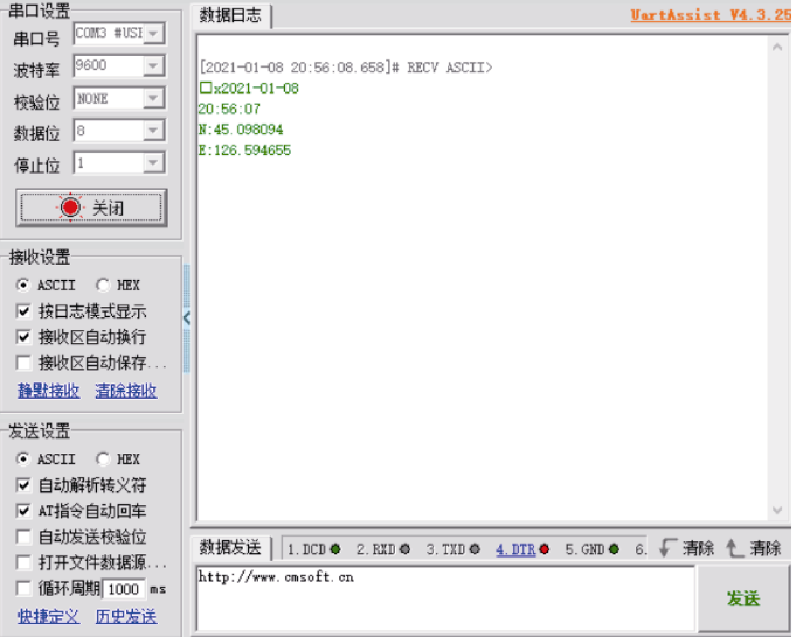本文中GPS-OME模块的通信协议采用常用的NMEA协议,由于通信卫星的数量在逐年增加,针对不同的报文具有不同的报头。本文采用的GPS报头为GP,所需数据主要包括帧数据、起始点及终止点。针对不同的帧数据,NMEA具有多种语句,可提供位置、时间、速度等信息。