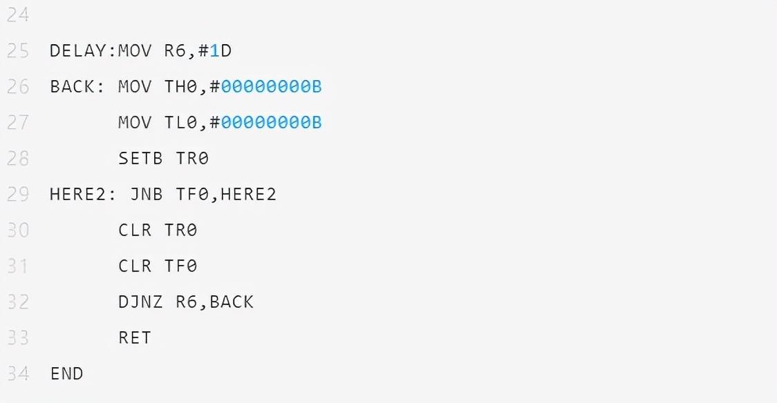 将定时器 0 配置为模式 1,用于产生 65 毫秒的延迟。65ms 是每个控制脉冲的宽度。
