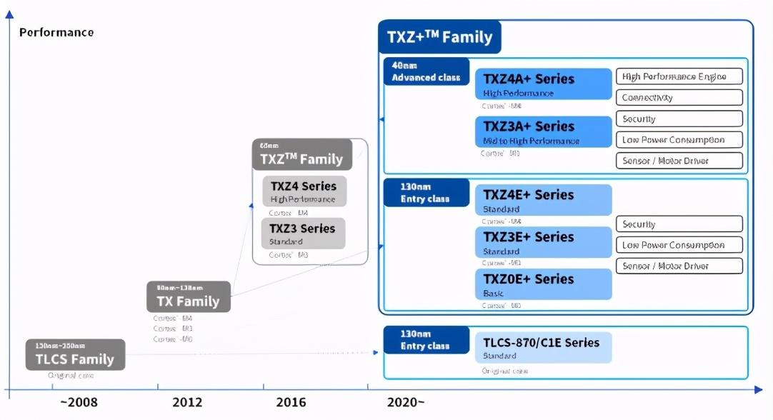 东芝单片机的特点从4位机到64位,门类齐全。4位机在家电领域仍有较大的市场。8位机主要有870系列、90系列等,该类单片机允许使用慢模式,采用32K时钟时功耗低至10uA数量级。CPU内部多组寄存器的使用,使得中断响应与处理更加快捷。东芝的32位单片机采用MIPS3000ARISC的 CPU结构,面向VCD、数字相机、图像处理等市场。