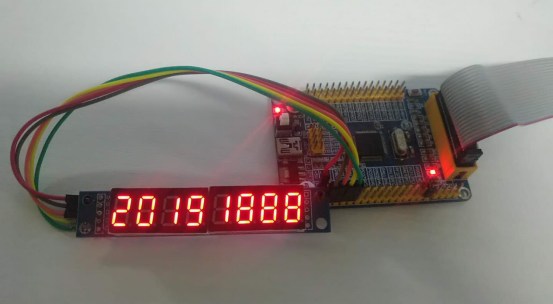 程序写好之后编译OK,通过J-LINK下载到STM32,下载完成后可以看到数码管在飞快的计数了,计数器制作成功,当计数到20191888时,刚好抓拍了一张,好意头啊,2019要发发发,提前祝大家2019发大财,行大运哈。