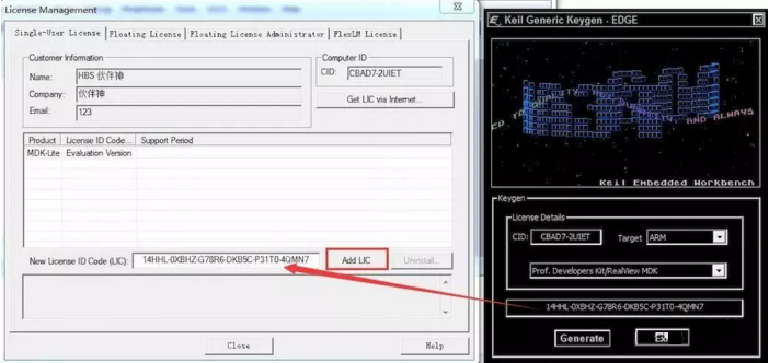 14.将得到的许可复制到软件LIC框内,点击ADD LIC即可