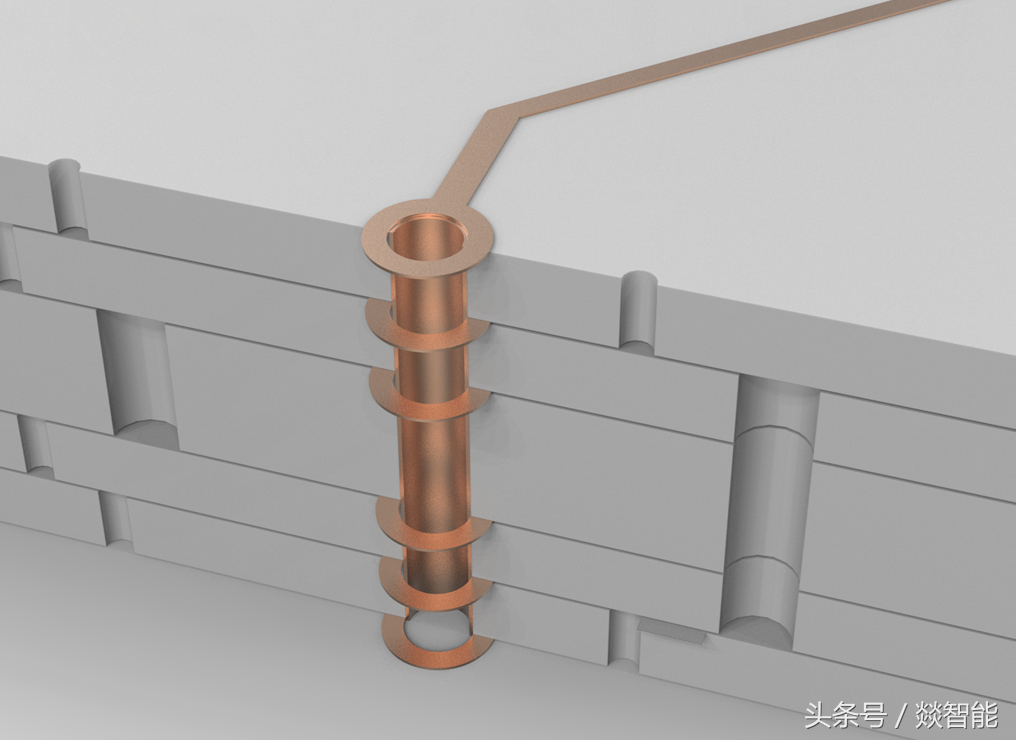 线路都是蚀刻出来的,过孔都是钻孔再镀铜出来的 ,这些做硬件开发的大家都懂,就不赘述了。有不了解的,可以看看燚智能头条号之前的两篇文章。