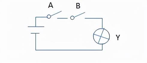 上图电路中两个串联开关控制一个灯泡,只有两个开关都闭合时,灯泡才会被点亮。两个开关同时闭合是条件,灯泡被点亮是结果,这就是一个“与”逻辑关系。开关在实际电路中用晶体管代替,就成了具有逻辑功能的数字电路了。