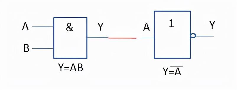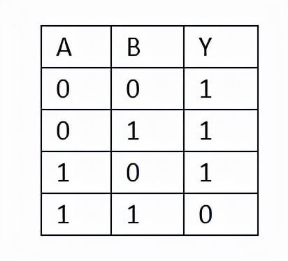 逻辑表达式:Y=!(AB)(同样感叹号表示上划线),特点:全1输出0,有0输出1。