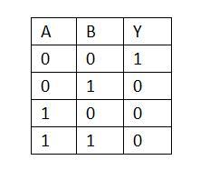逻辑表达式:Y=!(A+B),特点:有1输出0,全0输出1。