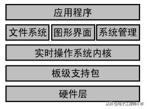 嵌入式软件系统的基本模型如图2.6所示。当然,并不是所有软件系统都完全遵循这一模型。然而对于大多数嵌入式设备来说,采用这种层次结构来开发整个系统的软件,具有很强的可操作性和可维护性。
