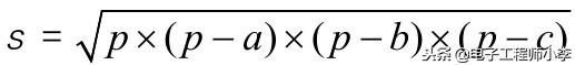 ,其中p=(a+b+c)/2。a、b、c为各边边长。 由h=2s/c(底边长)可知高。从图2.24中可以看到,整个大三角形被高分成了左、右两个小直角三角形。以左侧小三角形为例,由勾股定理可知