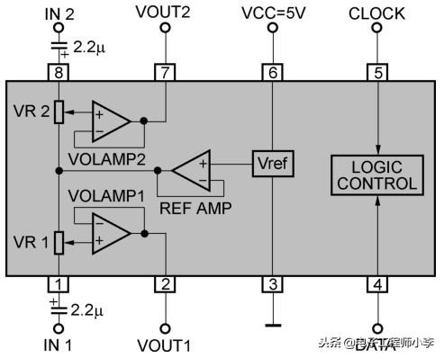 我们以FM62429作为音量控制模块的核心器件,其原理图如图2.11所示。