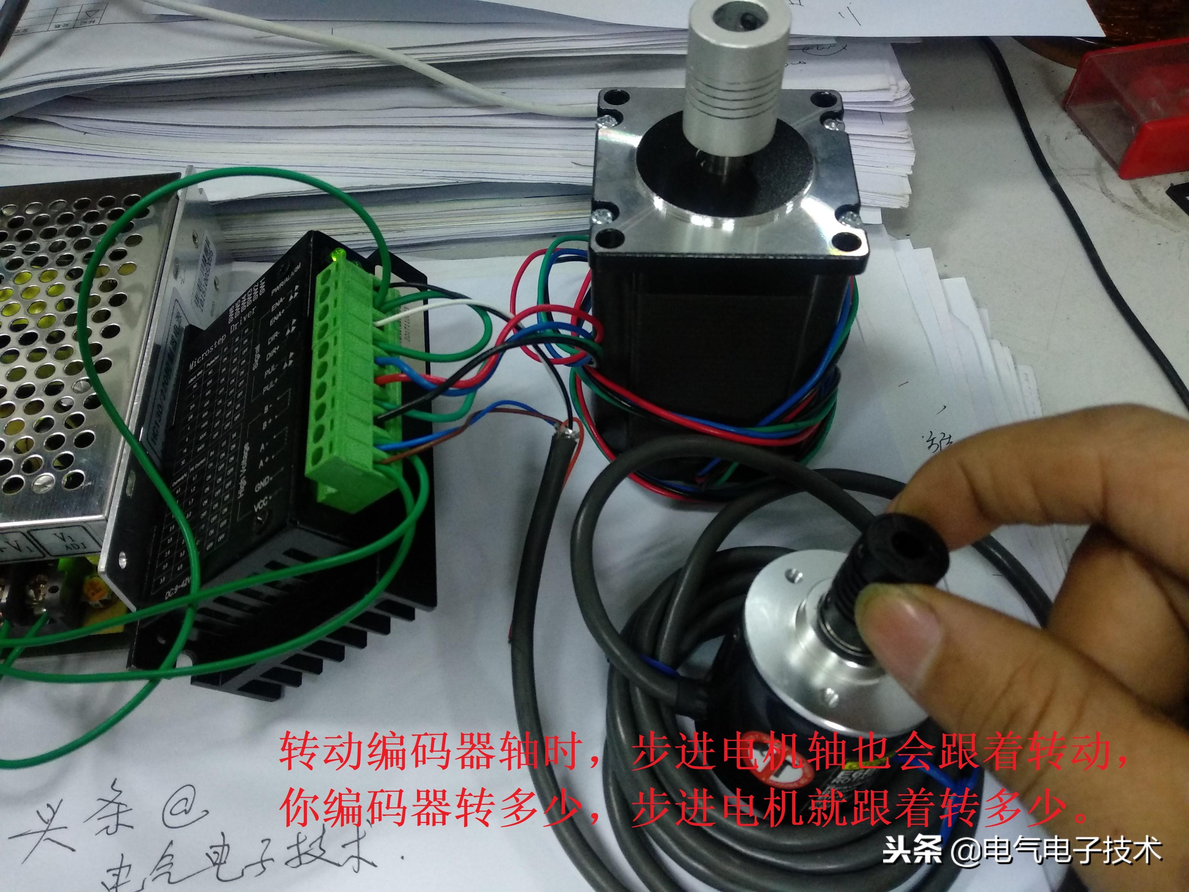 当转动编码器时,转多少圈编码器,步进电机就能自己转多少圈,如果信号屏敝得好,理论上编码器与步进电机转的圈数是完全对应的。