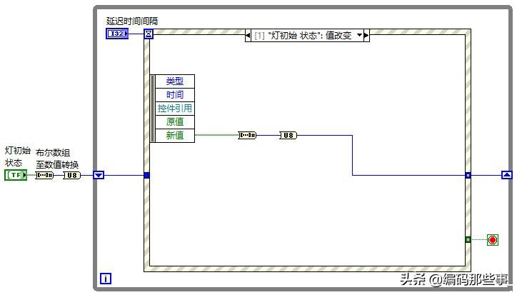 可能大家会想,如果一开始让你在LabVIEW中实现一个这么花哨的多种控制功能的流水灯小程序,你可能会觉得这太难了,甚至无从下手,实际上,通过上面的实现代码可看出程序也并不是太难,关键是要熟悉如事件结构、移位寄存器、循环移位及布尔数组与数值之间的转换等几个小知识点,把任务分解清楚,花不了几分钟也就可以做出来了。