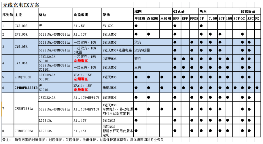 最后介绍一下本次研发的无线充电方案商:深圳市一鑫研创科技有限公司是一家有独立研发团队,专注于无线充电方案研发,目前隶属于老牌无线充电芯片原厂凌通科技有限公司,研发团队每个核心成员具有8年及以上的无线充研发经验,目前已在市场销售方案如下: